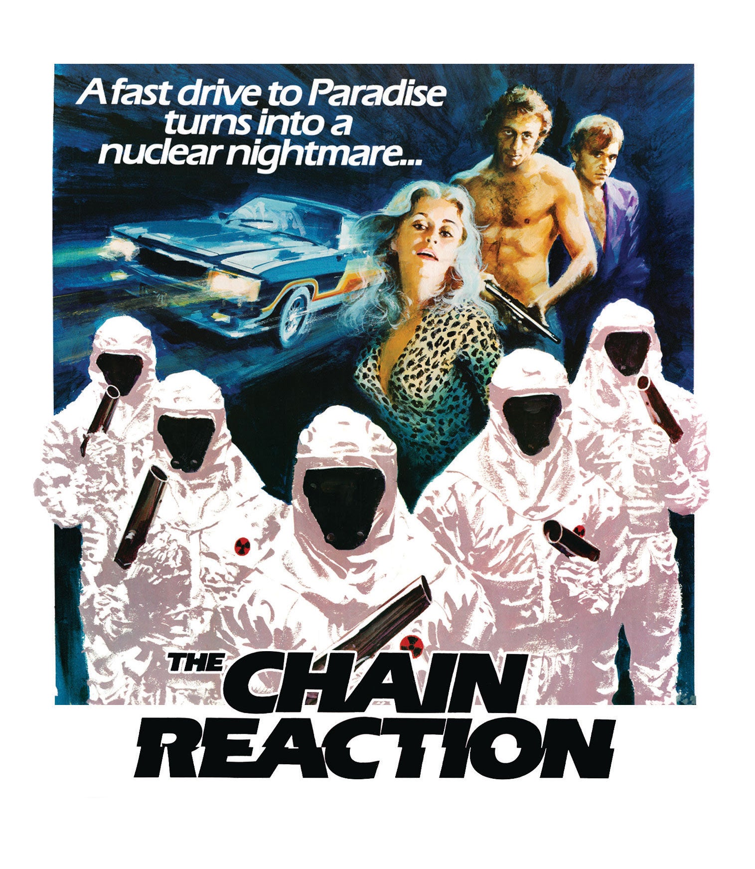 Boasting high-octane car chases and spectacular stunts staged by George Miller, the director of Mad Max, and appearances from the stars of that film (Steve Bisley, Hugh Keays-Byrne and Mel Gibson), The Chain Reaction is a slick, futuristic action thriller that hurls you into the nightmarish world of terror and nuclear holocaust.
