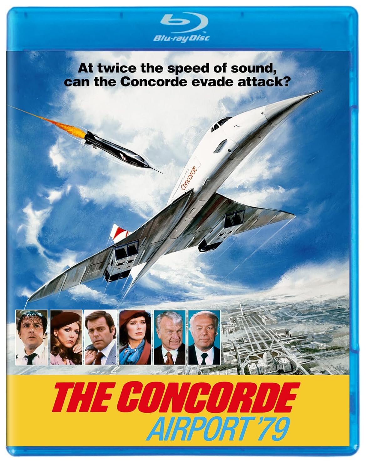 Matchless intrigue soars out of the sky at supersonic speed in this incredible tale of airborne suspense derived from Arthur Hailey’s all-time bestseller. Susan Blakely headlines the star-studded, tension-packed international drama as a jet-setting TV reporter who puts everyone on board a Moscow-bound Concorde in jeopardy when she becomes the target of her former lover, traitorous arms smuggler Robert Wagner. The lives of Alain Delon, Sylvia Kristel, Eddie Albert, Bibi Andersson, Charo, John Davidson, Martha Raye, Cicely Tyson, David Warner, Mercedes McCambridge and the mighty George Kennedy hang in the balance amid flying missiles and exploding bombs in this enthralling globe-trotting adventure helmed by director David Lowell Rich (The Horror at 37,000 Feet, SST: Death Flight), a specialist of sky-high suspense.