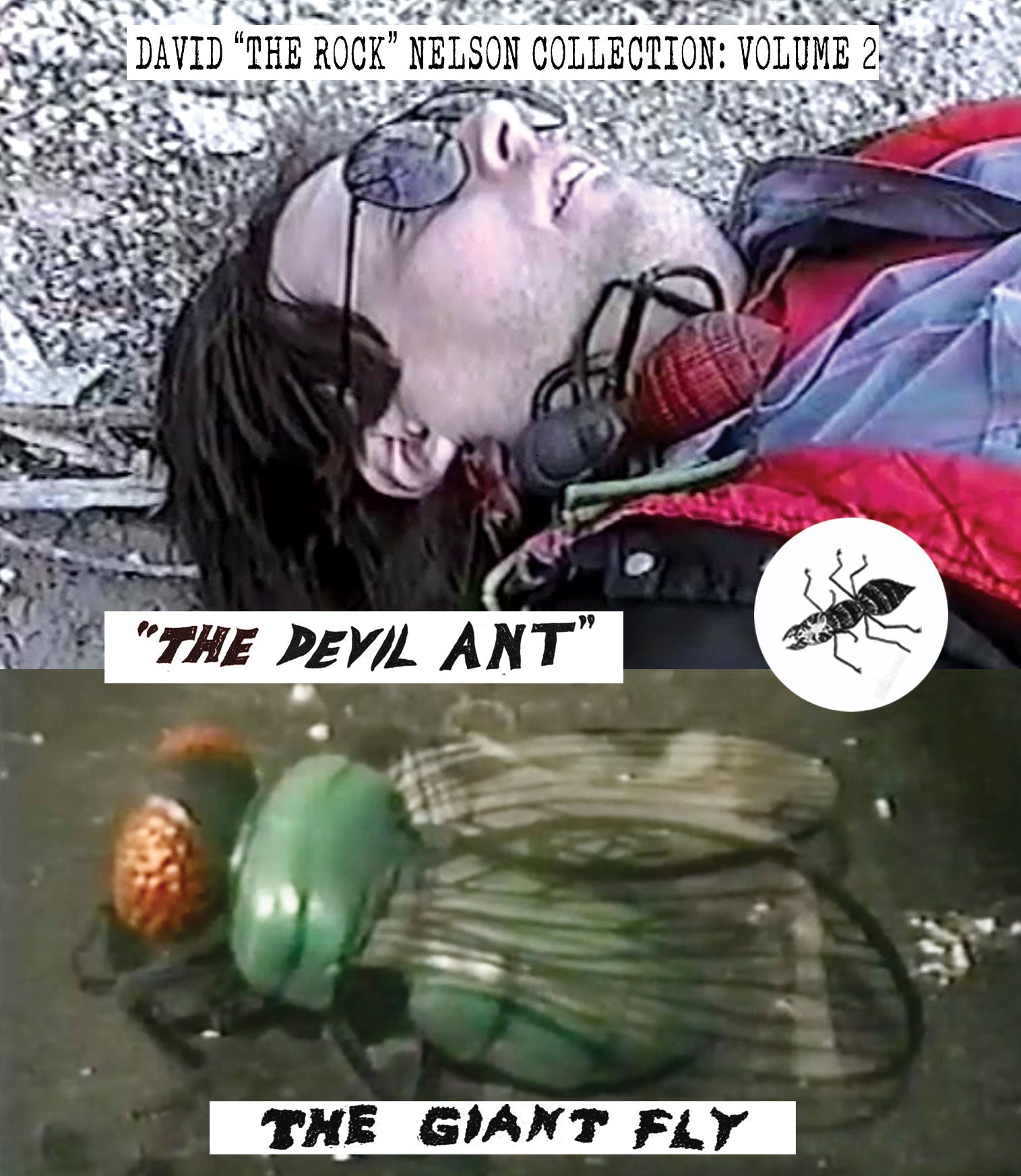Over 4 1/2 years in the making and clocking in at a staggering 2 1/2 hour runtime, The Devil Ant from 1999 is considered by many to be Nelson's magnum opus and mission statement. When the sardine gobbling mad doctor (Nelson) and his absent minded assistant (also Nelson) dump a pail of nuclear waste into the nearby water supply, an ordinary ant (Nelson’s infamous dime store rubber toy) is transformed into an unstoppable, marauding menace! With Detective Rock (Nelson again) not-so hot on the trail, the radioactive ant (as well as David’s probing camcorder) wreaks havoc on the streets, restaurants, and horror conventions of Illinois as Nelson brazenly flings his rubber ant at unsuspecting civilians, exasperated friends and family members, and confused convention attendees and celebrities. Featuring “appearances” by cult film luminaries including Forest J. Ackerman, Roger Corman, Fred Olen Ray, Bill Hinzman, Conrad Brooks, John Russo, Carl J. Sukenick, and even former first lady Hillary Rodham Clinton!! Saturn’s Core is proud to present Nelson’s stream of consciousness SOV epic The Devil Ant along with a host of brain-smashing shorts and madness hand picked by “The Rock”, plus the 2007 feature length documentary Can’t Stop the Rock, and nearly 4 stinkin’ hours of doughnut dunking special features.