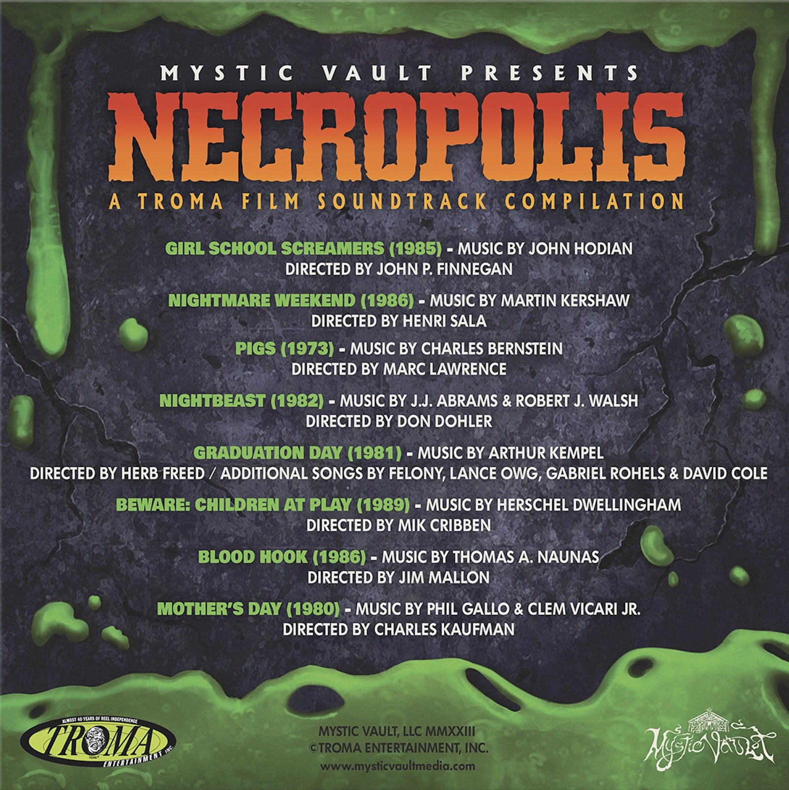 Necropolis: Troma Entertainment Film Soundtrack Compilation (Limited Edition Green/Orange Transparent Splatter Vinyl) Pre-Order Deadline January 30/26 Release Date March 10/26
